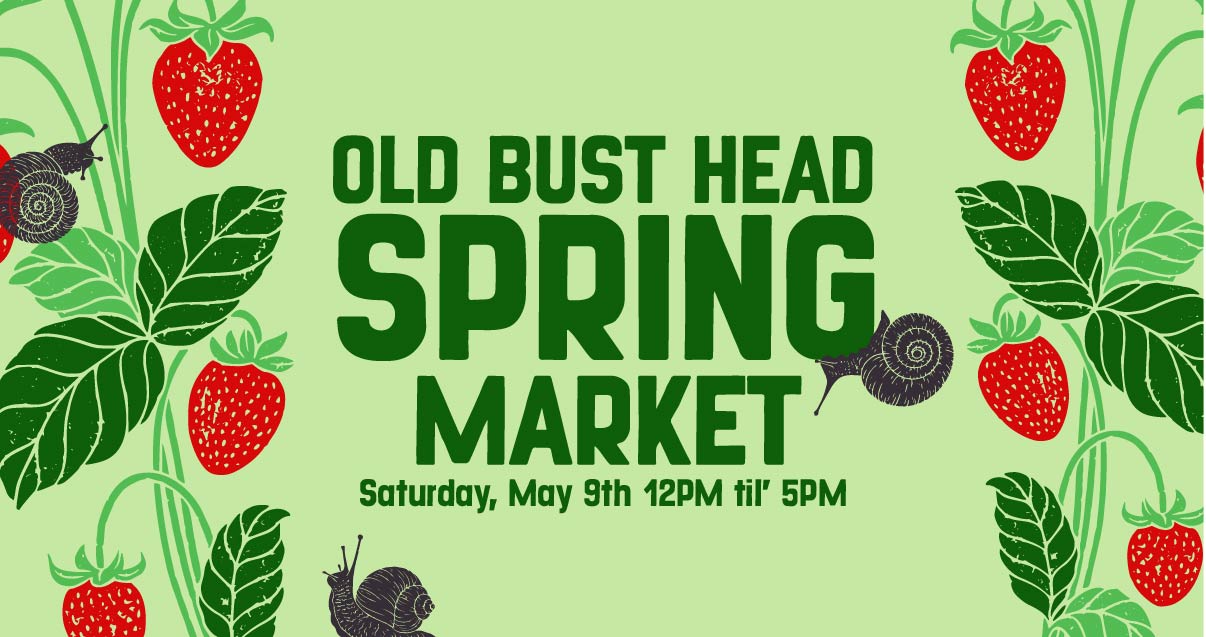 Come out to the taproom Mother's Day weekend on Saturday, May 9th 12pm-5pm as we join up with a long list of local food trucks, crafters, and artisans for a Spring Market celebration of handmade goods at Old Bust Head.