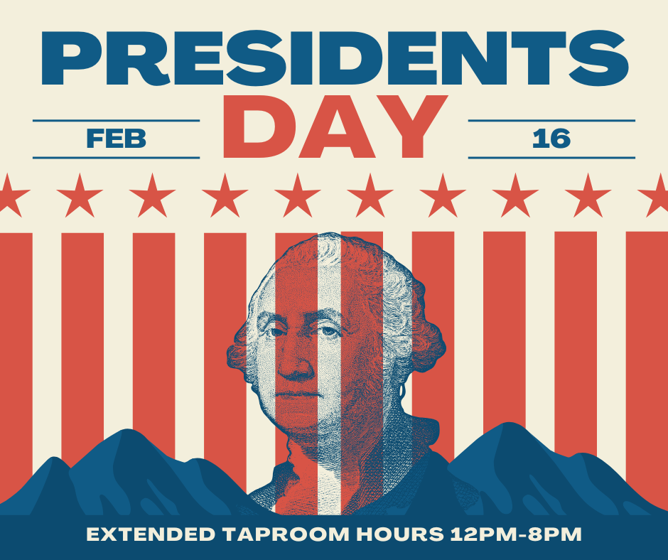 Back to Events President's Day Extended Hours 12:00PM-8:00PM Monday, February 16th, 2026 | Taproom Hours: 12PM-8PM